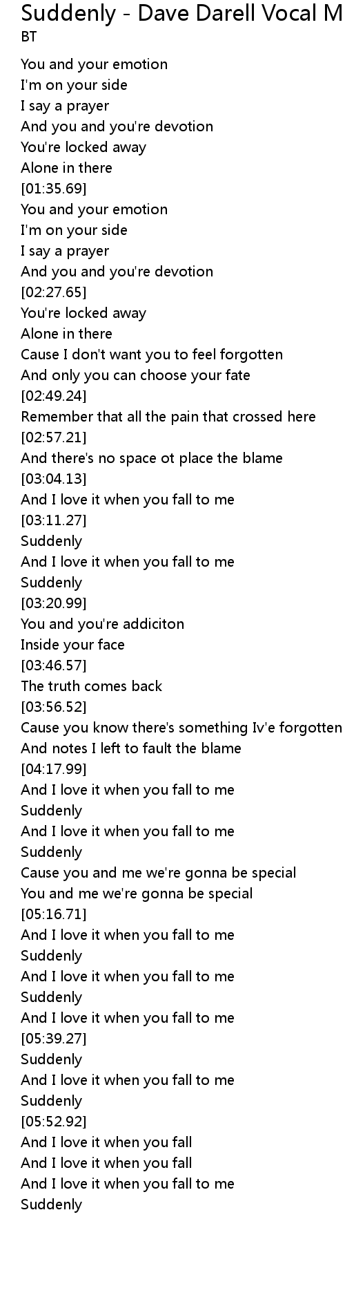 Suddenly - Dave Darell Vocal Mix Lyrics