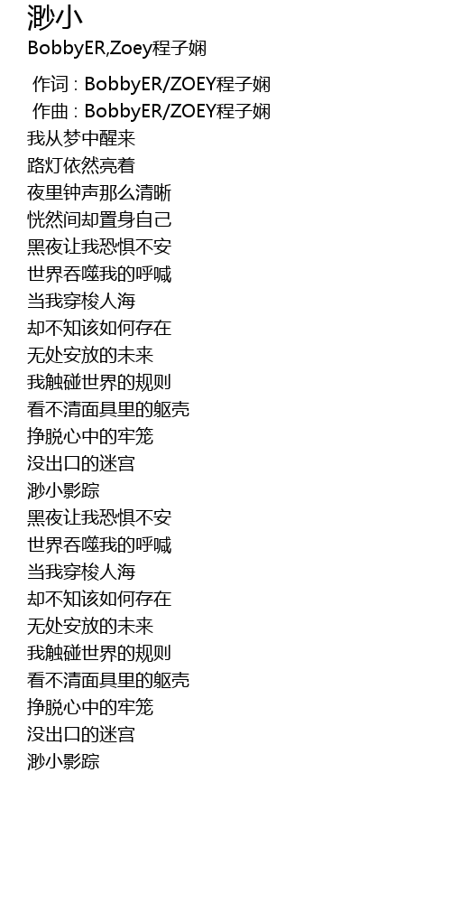 | [00:00.000] | 作词 : BobbyER/ZOEY程子娴 |