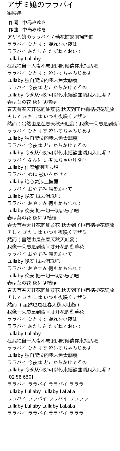 | [03:03.390] | Lullaby Lullaby Lullaby LaLaLa |