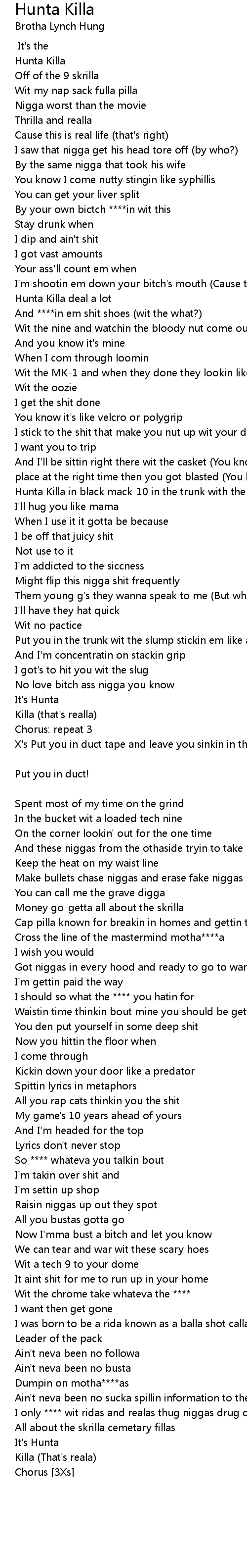 X's Put you in duct tape and leave you sinkin in the river (Hunta Killa! Killa!) |