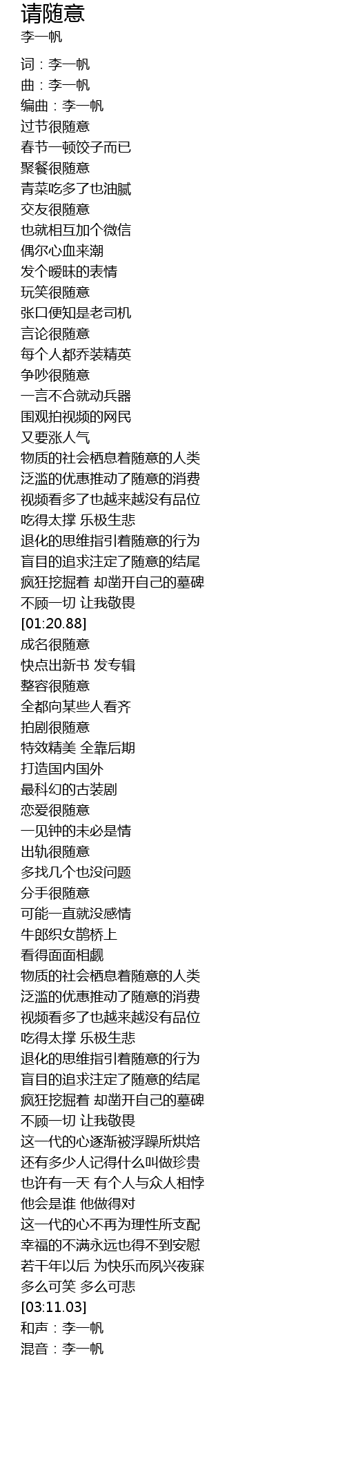 | [02:27.21] | 盲目的追求注定了随意的结尾 |
