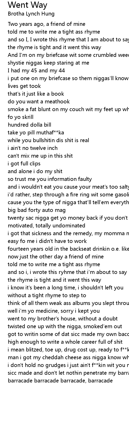 cause you the type of nigga that'll tell'em everything you saw, wit my |