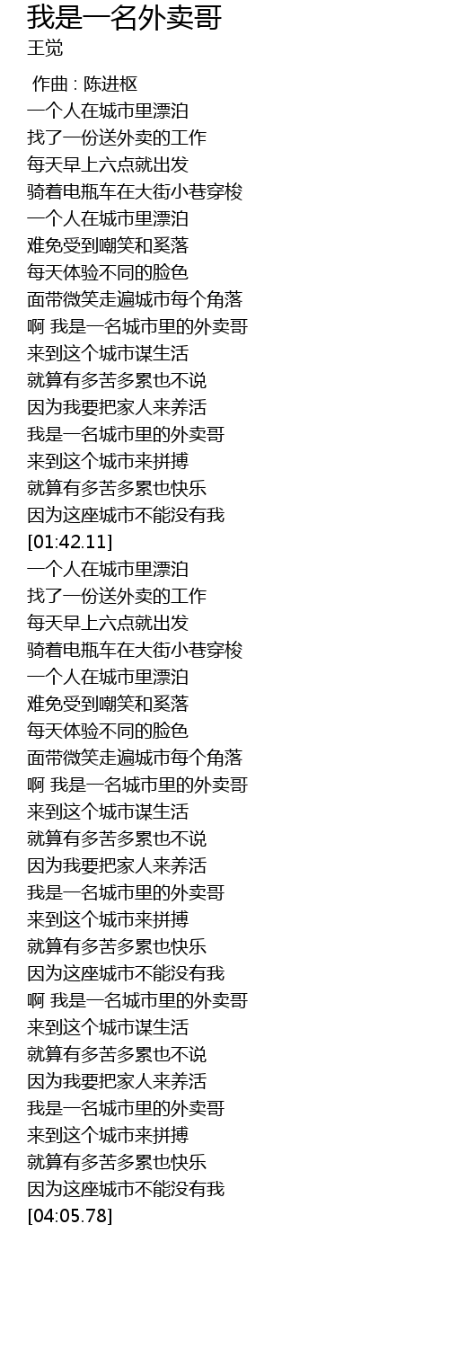 | [03:30.22] | 我是一名城市里的外卖哥 |
