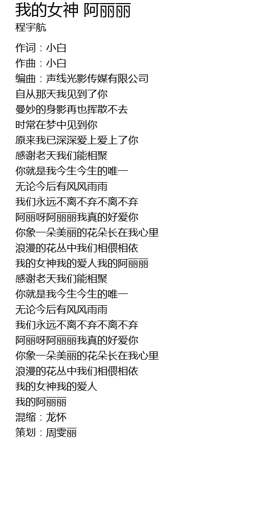| [01:51.86] | wǒ de nǚ shén wǒ de ài rén wǒ de ā lì lì |