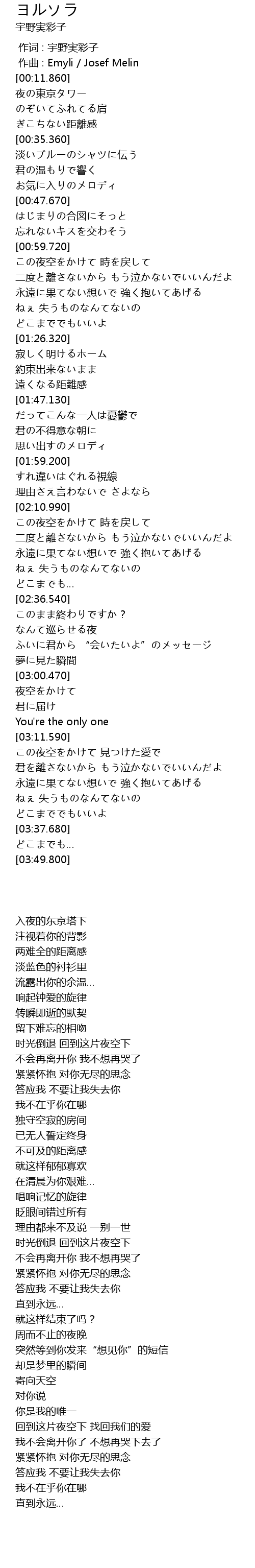 | [00:00.000] | 作词 : 宇野実彩子 |