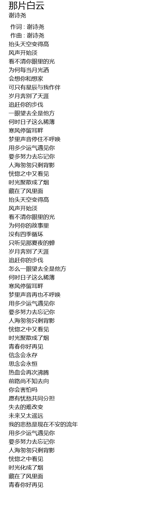 | [00:00.000] | 作词 : 谢诗尧 |