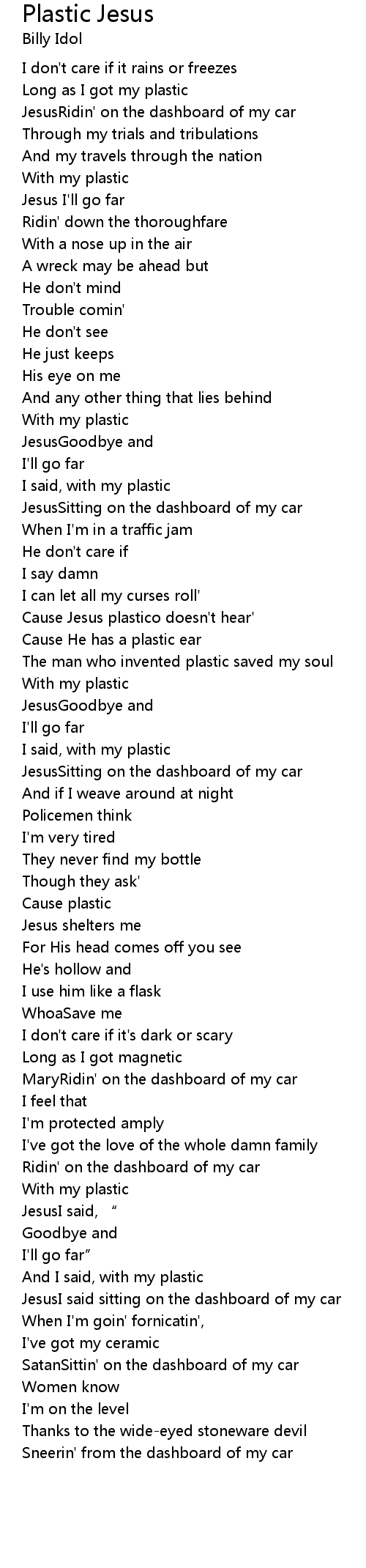 | Song | Plastic Jesus |