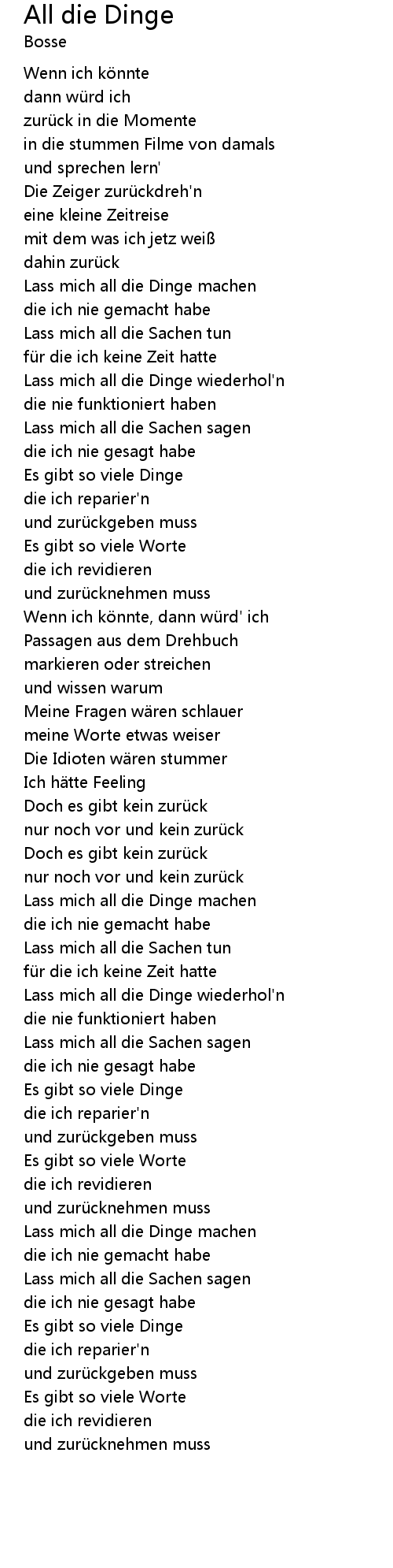 | Lass mich all die Dinge wiederhol'n | |