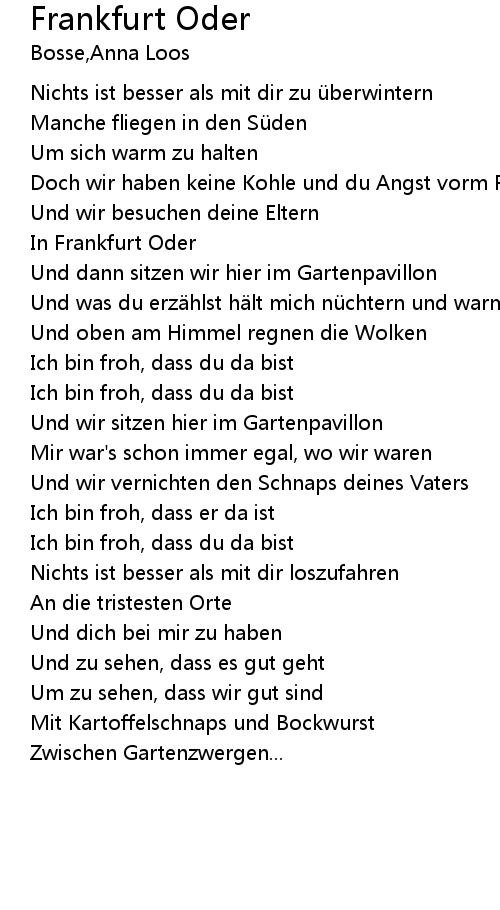 | Und was du erz hlst h lt mich nü chtern und warm | |