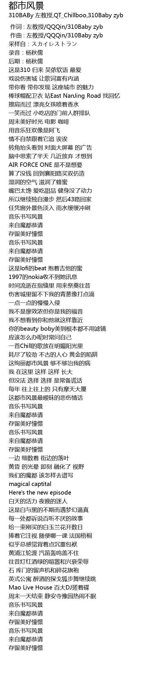 | [00:01.000] | 作曲 : 左教授/QQQin/310Baby zyb |