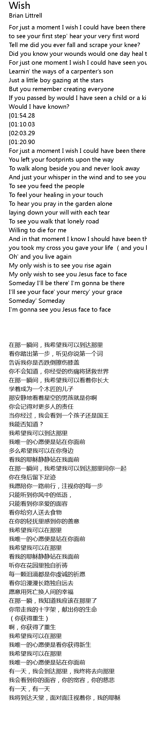 | [03:18.78] | My only wish to see you Jesus face to face |
