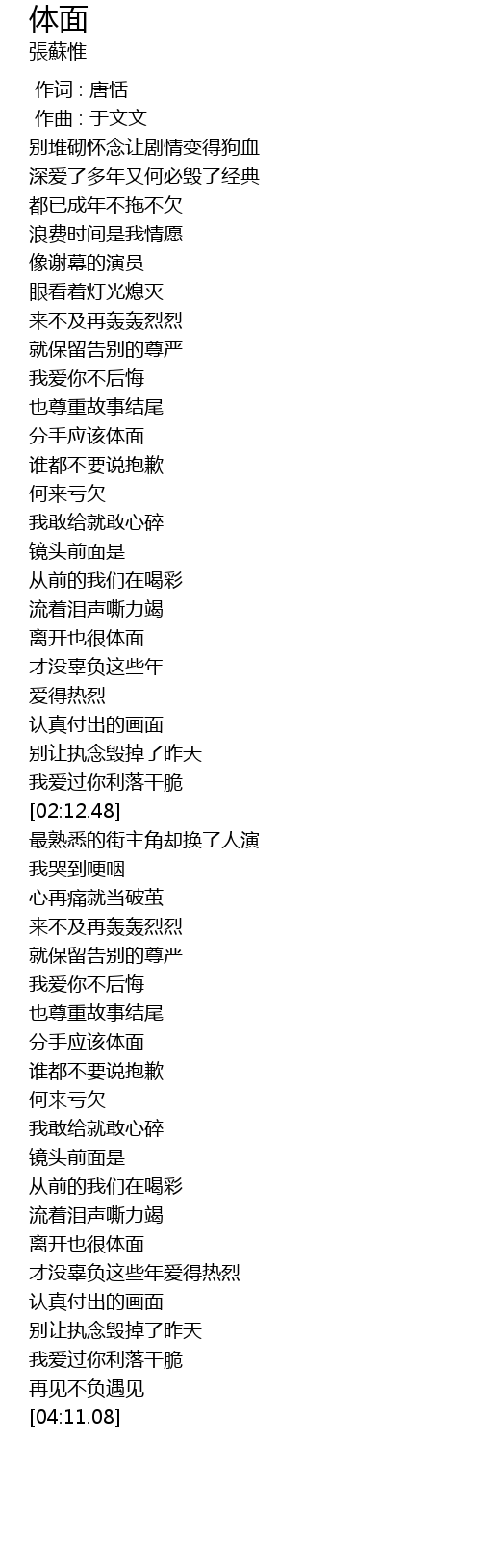 | [03:41.01] | 离开也很体面 |