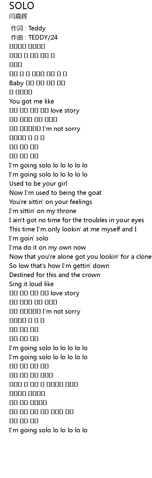 | [02:42.989] | I' m going solo lo lo lo lo lo |