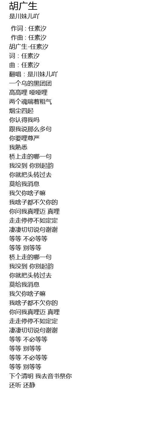 | [00:01.444] | hú guǎng shēng rèn sù xī |