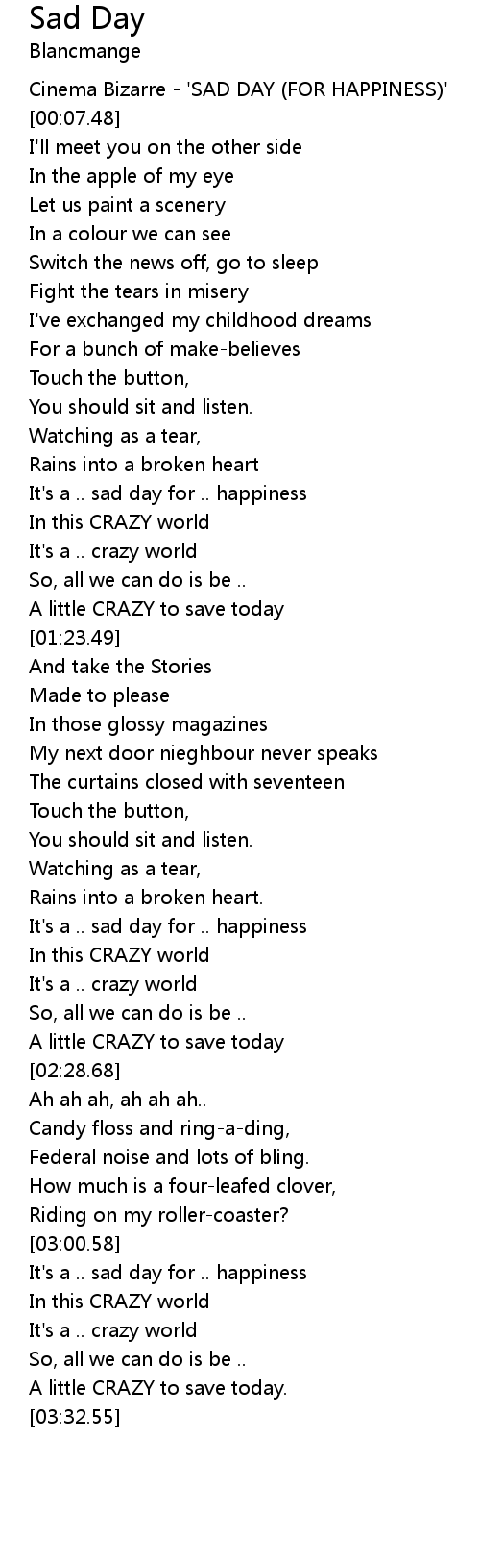 Cinema Bizarre - 'SAD DAY (FOR HAPPINESS)' |