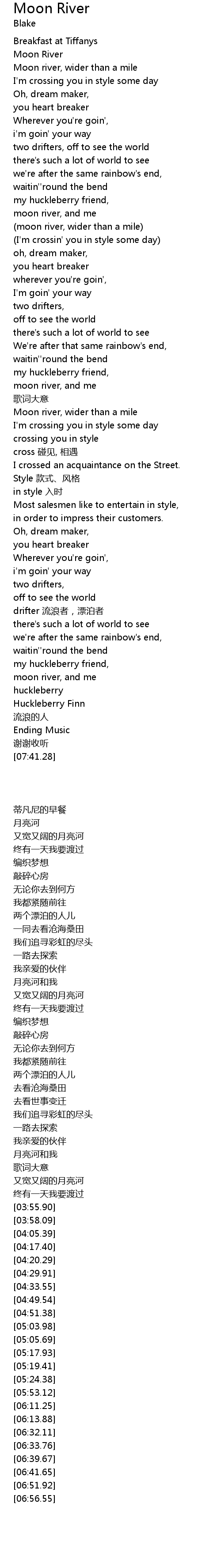 | [03:36.93] | Moon river, wider than a mile |