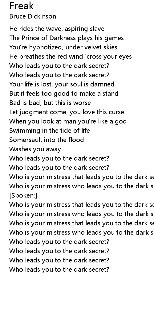 Who is your mistress that leads you to the dark secret? |