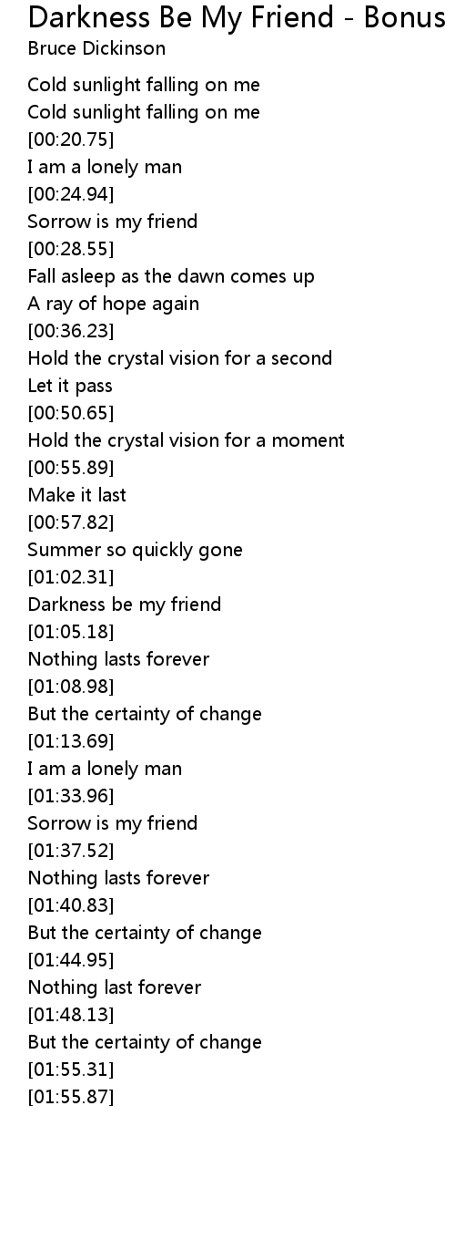 Song Darkness Be My Friend - Bonus track