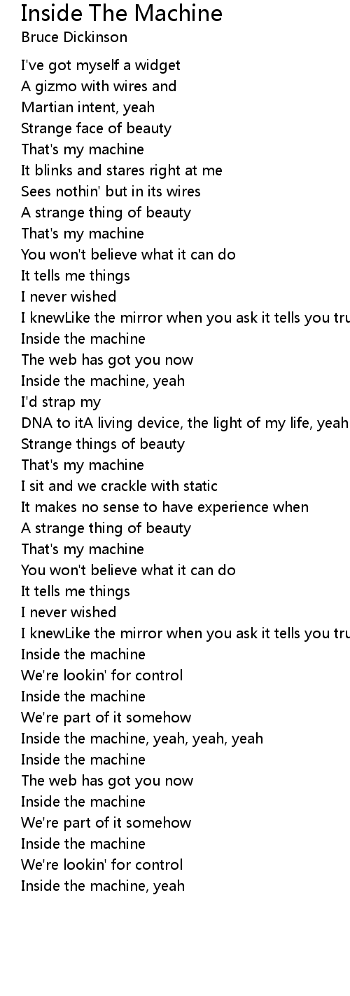 Inside the machine, yeah, yeah, yeah |