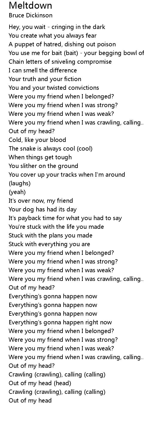 Were you my friend when I was crawling, calling... |