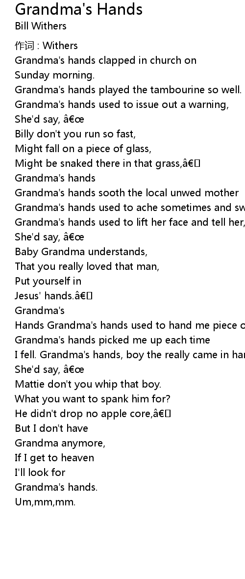 | Hands Grandma' s hands used to hand me piece of candy. | |