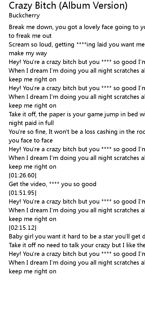 Hey! You're a crazy bitch but you **** so good I'm on top of it |