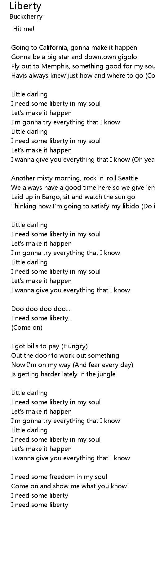 I need some liberty in my soul |