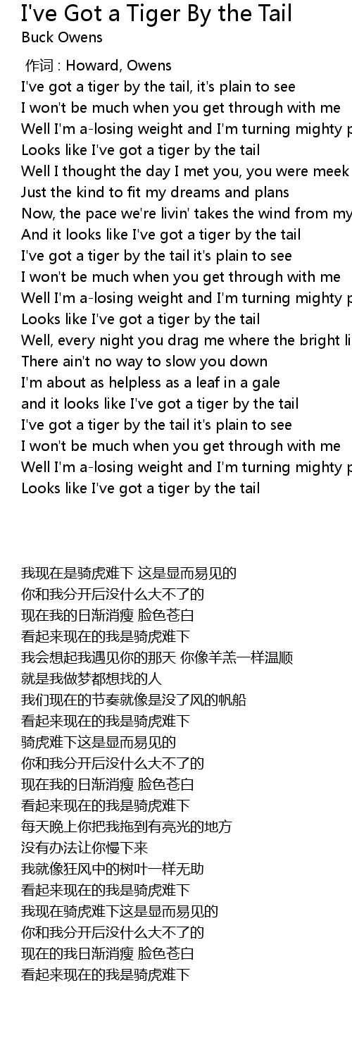 | [00:37.00] | And it looks like I' ve got a tiger by the tail |