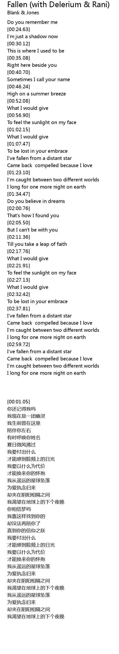 Fallen (with Delerium & Rani) Lyrics