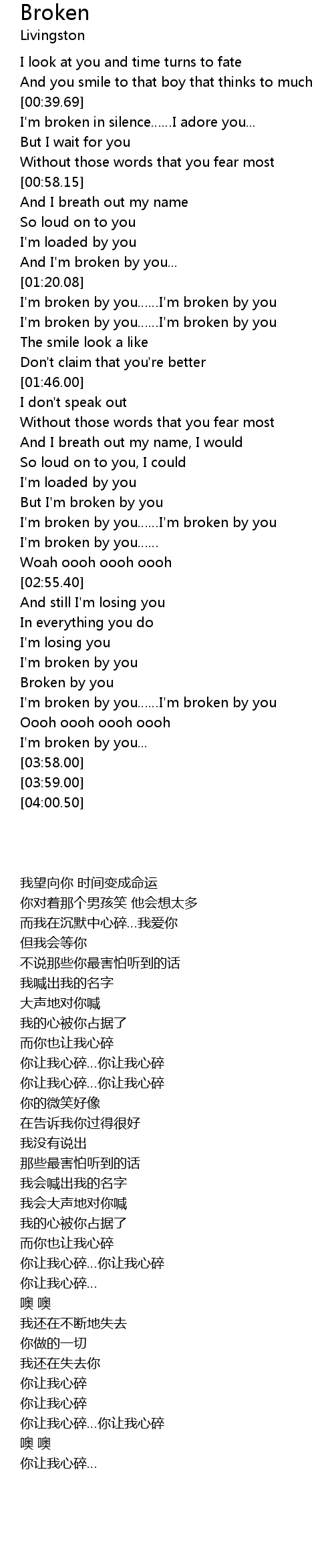 | [03:24.87] | I'm broken by you……I'm broken by you |