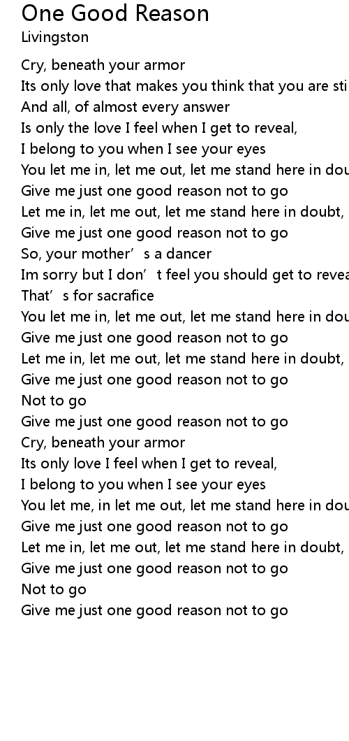 | Song | One Good Reason |