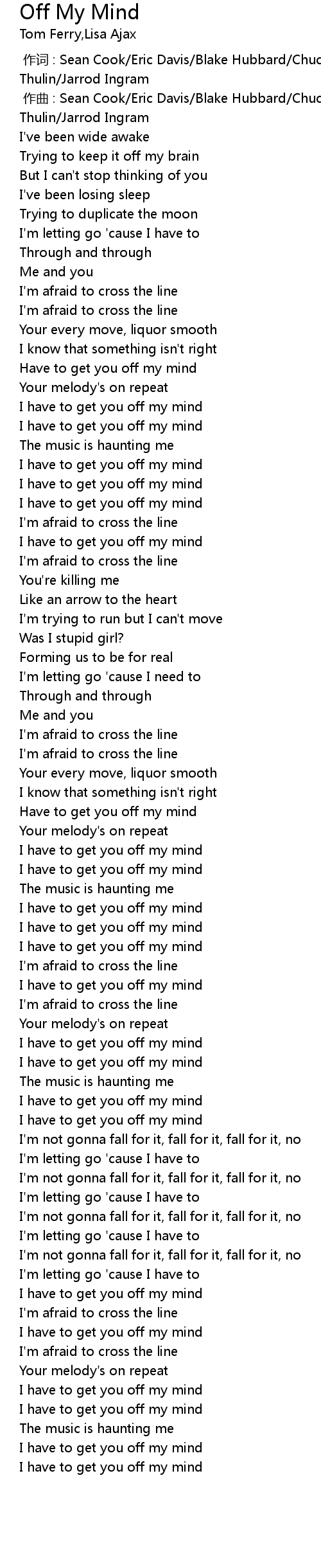 | [00:35.79] | I have to get you off my mind |