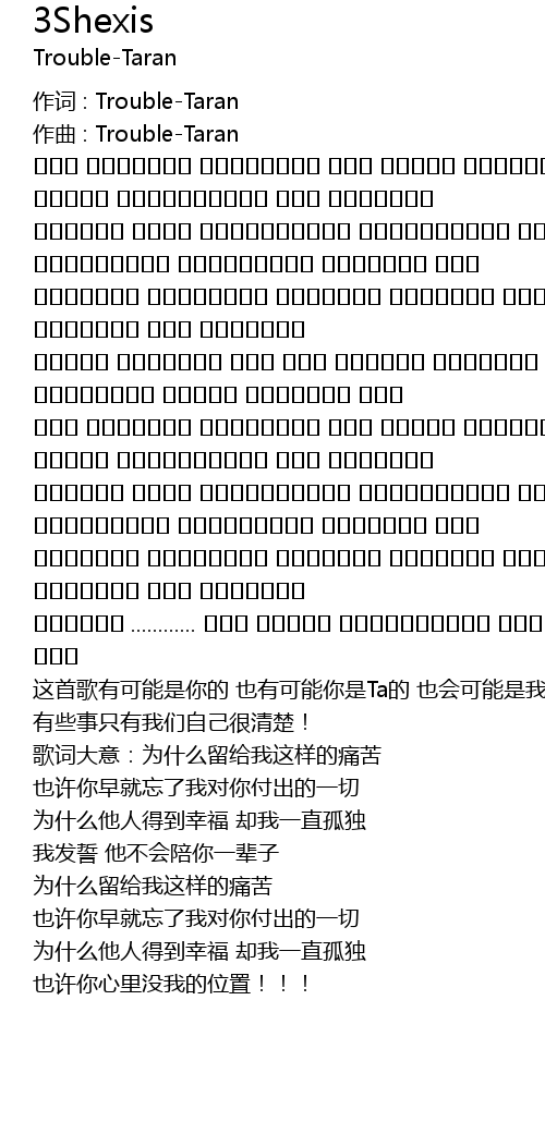 | 这首歌有可能是你的 也有可能你是Ta的 也会可能是我的故事 有些事只有我们自己很清楚! | |
