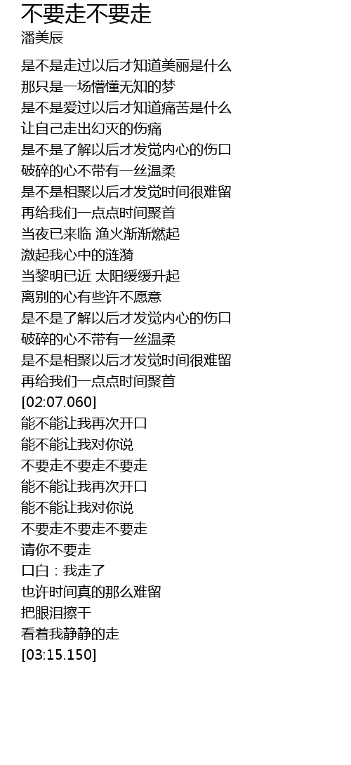 | [02:36.550] | bú yào zǒu bú yào zǒu bú yào zǒu |
