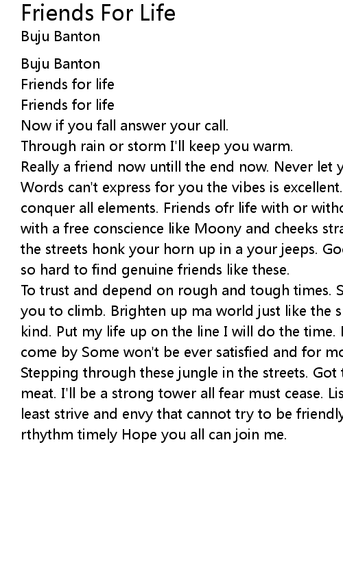 Words can't express for you the vibes is excellent. I will be by your side to conquer all elements. Friends ofr life with or without a cent. Genuinely honest with a free conscience like Moony and cheeks straight up to ma' peeps. Hommie in the streets honk your horn up in a your jeeps. Good looking out last week it's so hard to find genuine friends like these. |