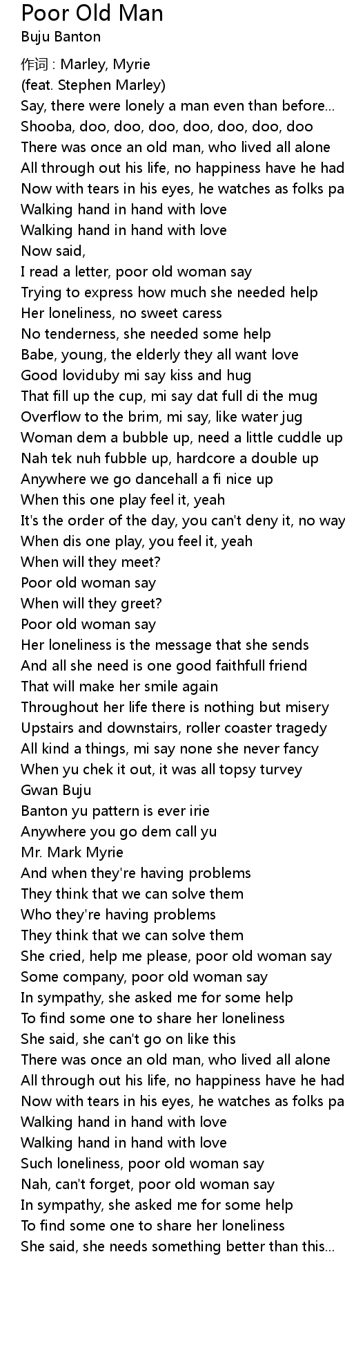 | Song | Poor Old Man |