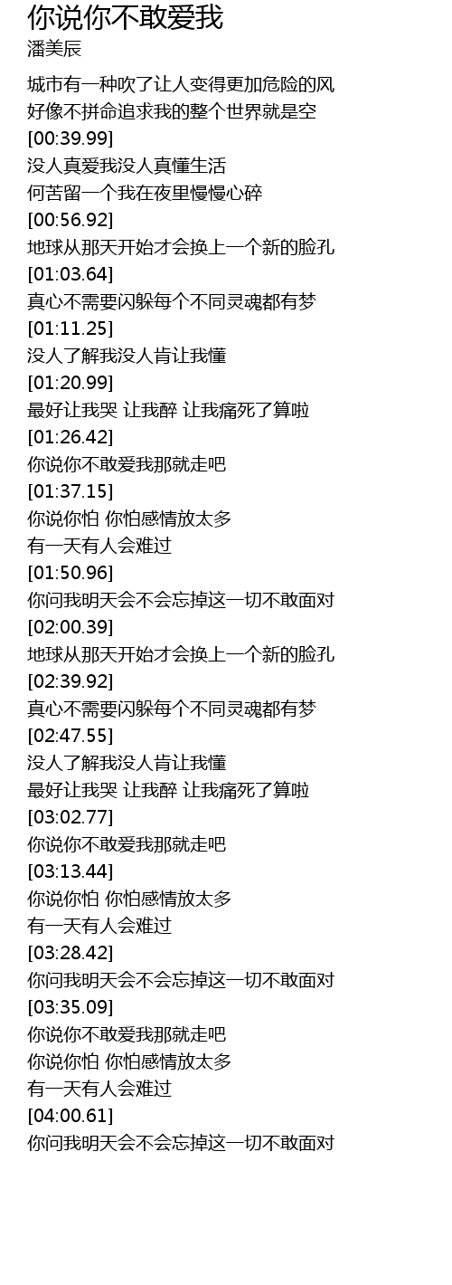 | [03:41.21] | 你说你不敢爱我那就走吧 |