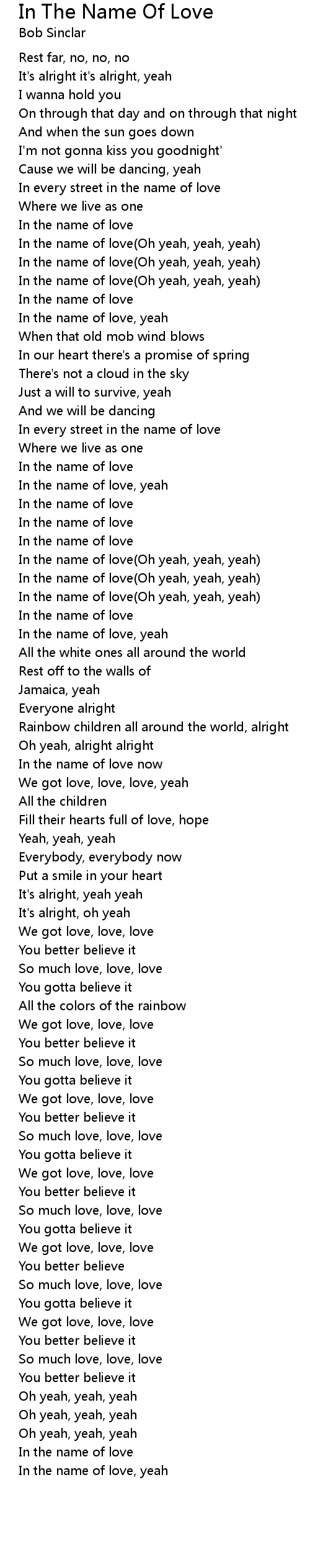 In The Name Of Love Lyrics