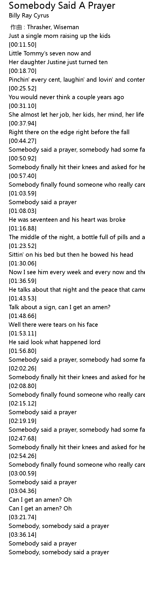 | [00:45.60] | Somebody said a prayer, somebody had some faith |