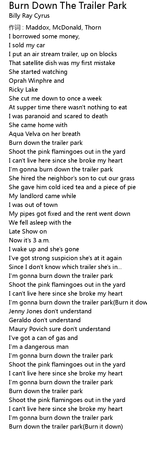 | I'm gonna burn down the trailer park(Burn it down) | |
