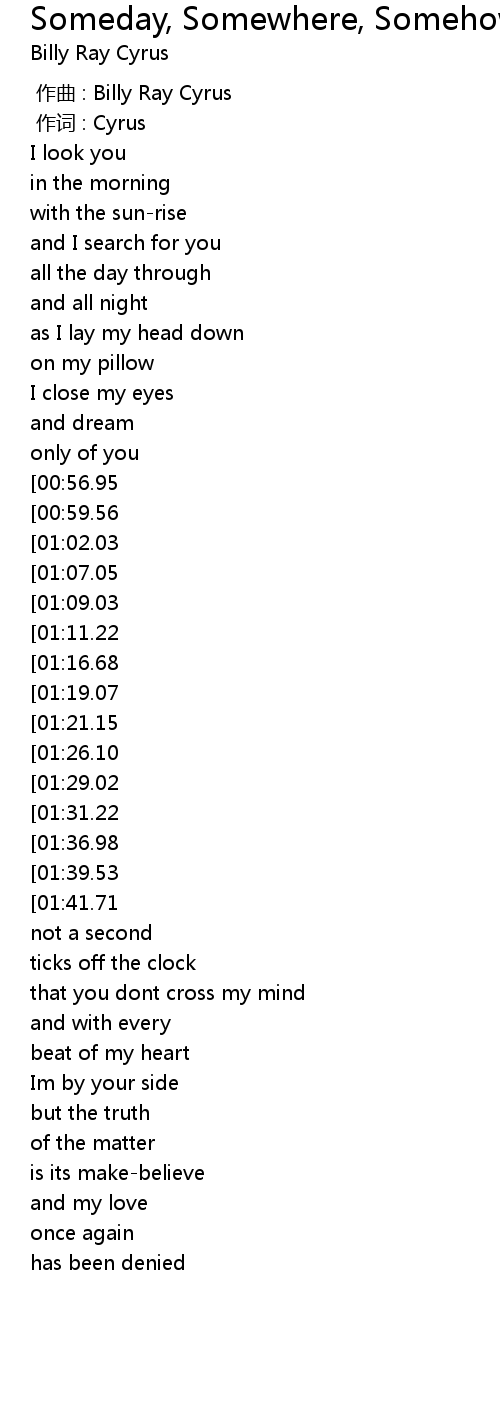 | [00:00.00] | zuo qu : Billy Ray Cyrus |