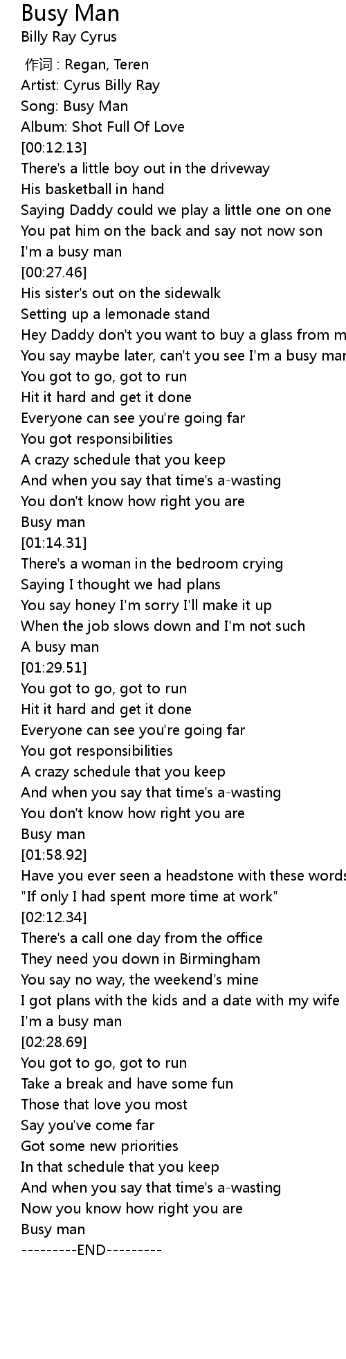 | [00:25.50] | I' m a busy man |