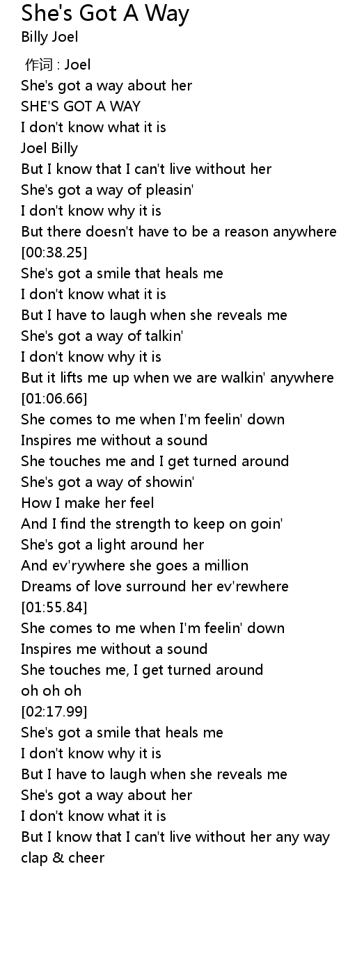 | [00:10.00] | SHE'S GOT A WAY |