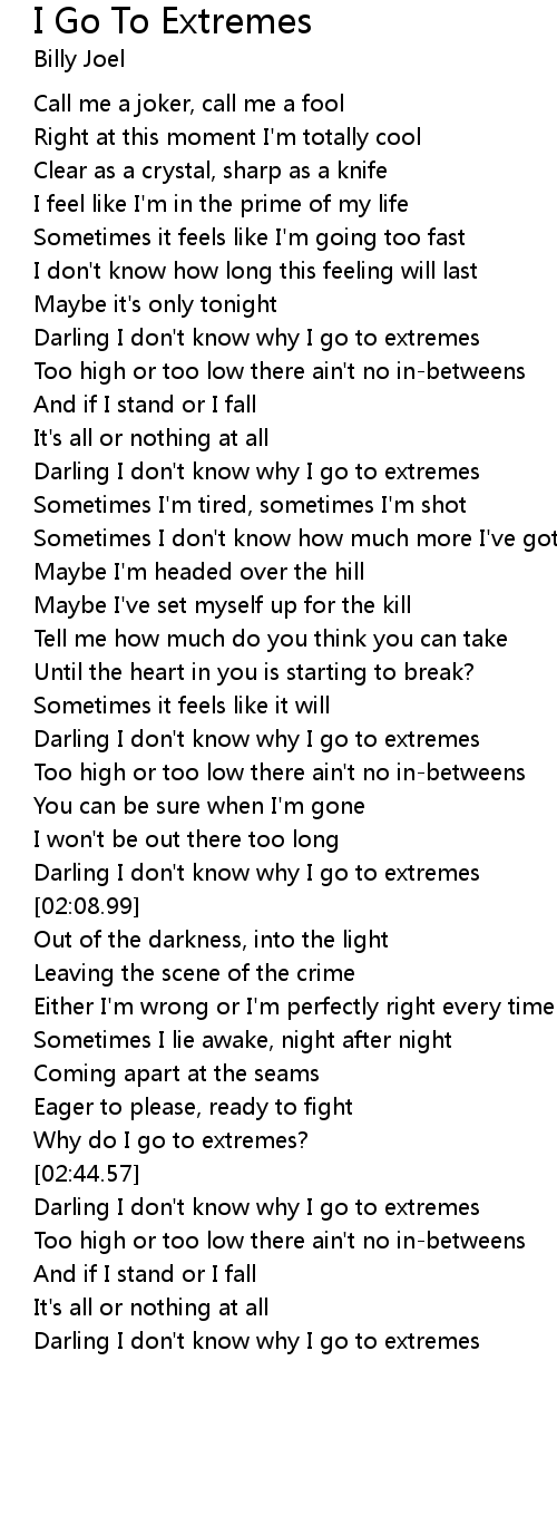 I Go To Extremes Lyrics