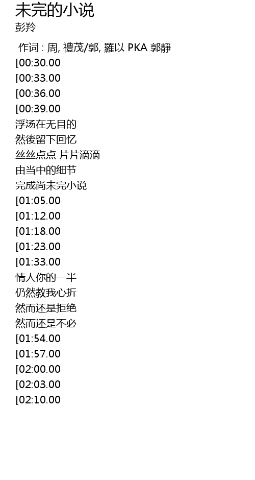 | [03:46.00][02:10.00] | 完成尚未完小说 |