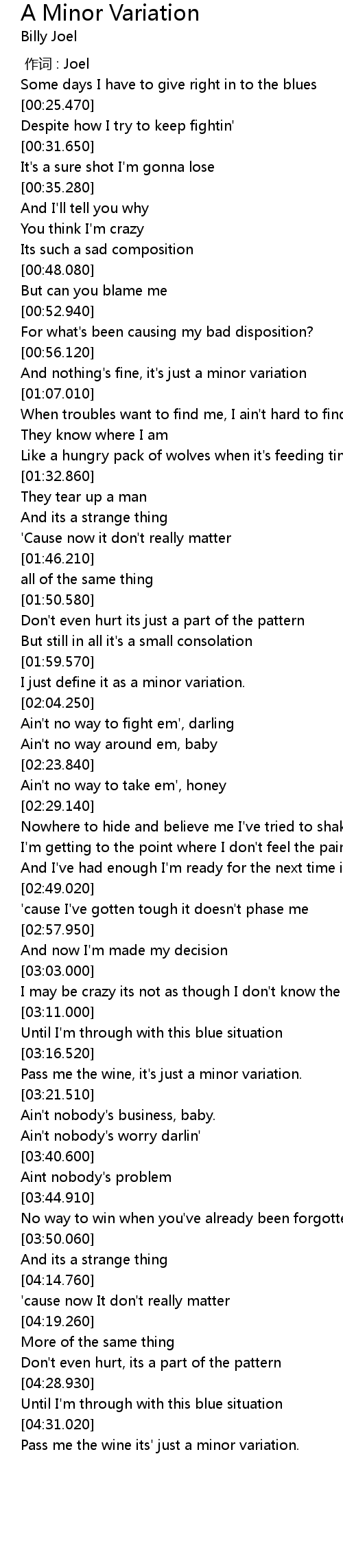 | [01:04.080] | And nothing' s fine, it' s just a minor variation |