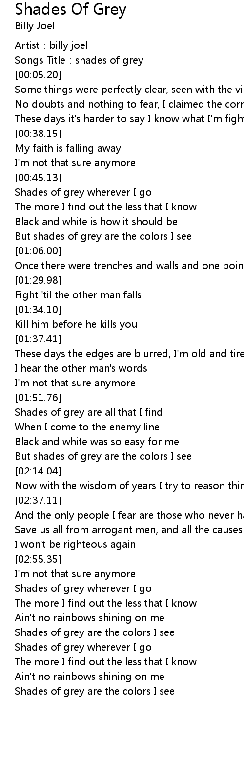 | [00:52.93] | Shades of grey wherever I go |