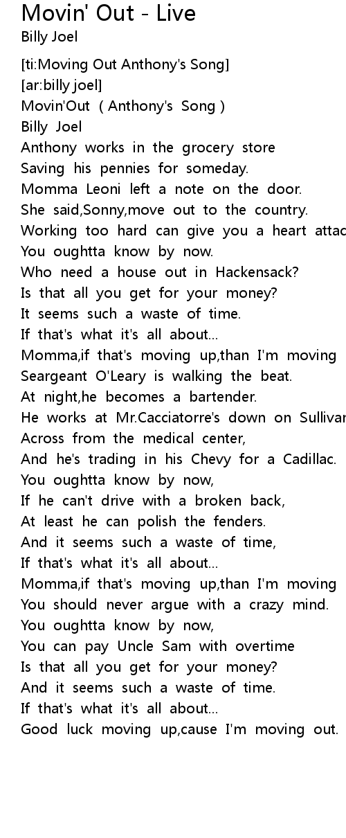 | [00:06.619] | Movin' Out Anthony' s Song |