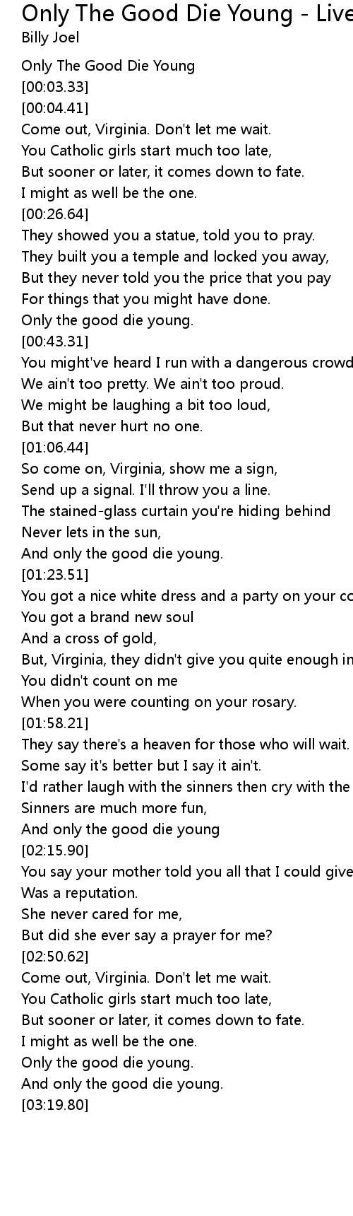 Only The Good Die Young |