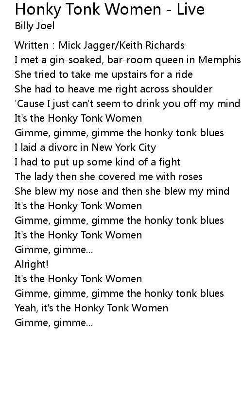 | Yeah, it's the Honky Tonk Women | |